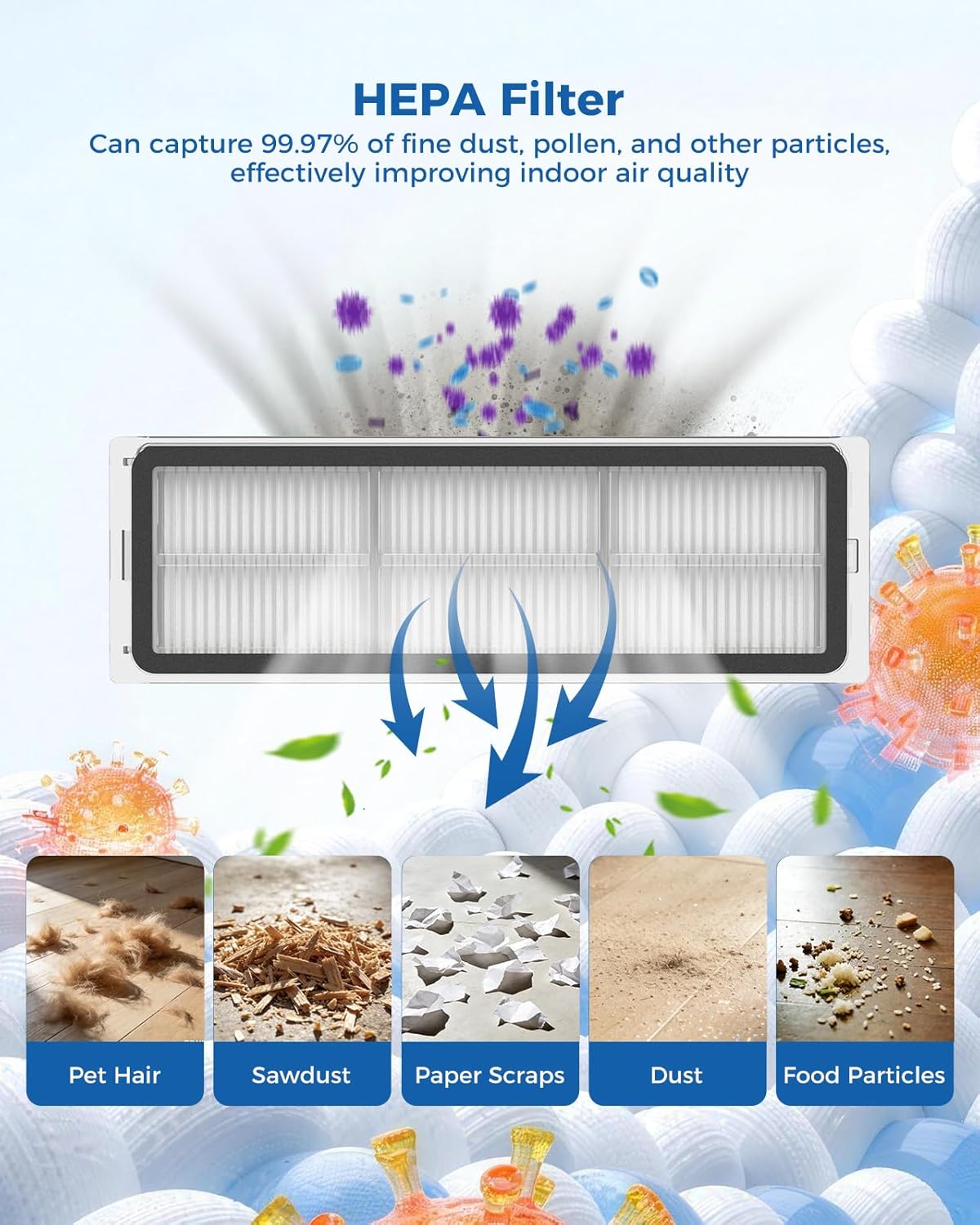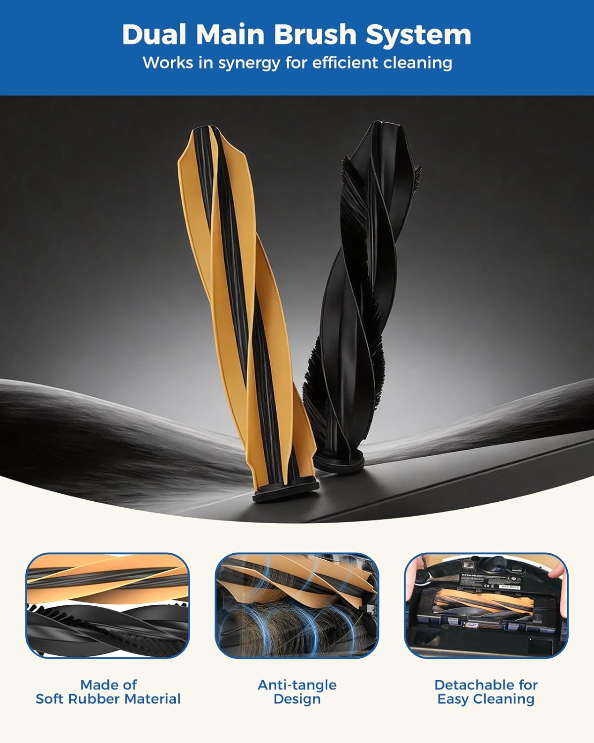 | Included Components | Dust bag, Hepa filter, Main brush, Mop pads, Side brush |