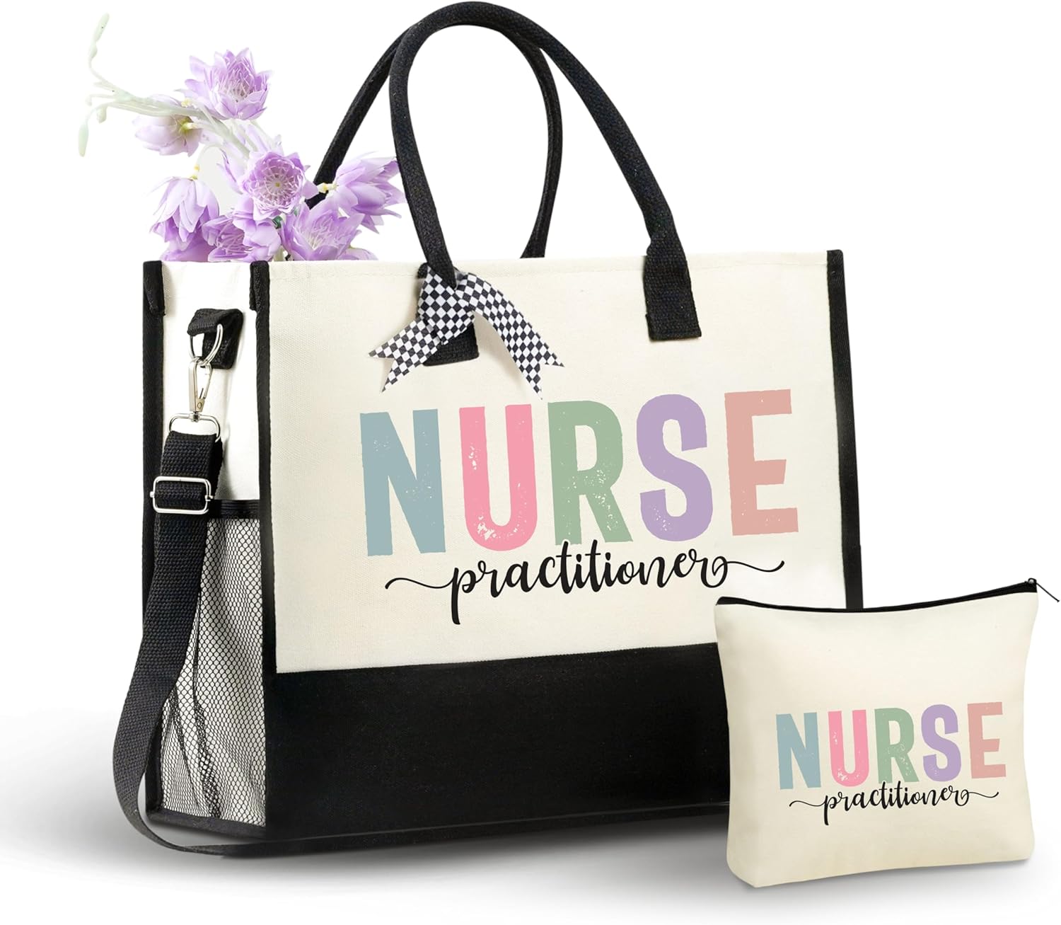 InnoBeta Nurse Practitioner Gifts Canvas Tote for Women, NP Stuff Bag with Top Zipper & Shoulder Strap for Appreciation Christmas Graduation