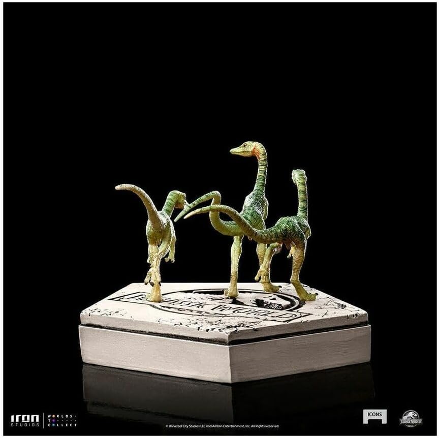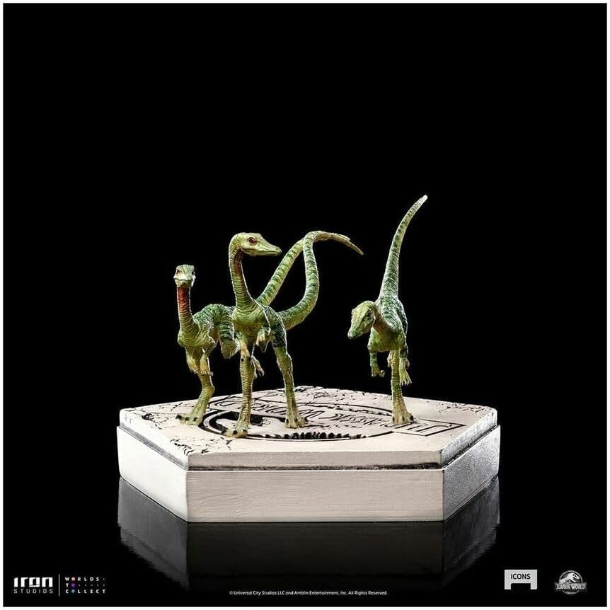 From Iron Studios. Based on the eponymous novel by Michael Crichton, award-winning filmmaker Steven Spielberg and Universal Studios astonished audiences worldwide in 1993 with Jurassic Park in the movie theaters. Huge fans of the franchise, Iron Studios presents their new collection, Jurassic Park Icons, with miniature statues over stylized pedestals with their logo, that meticulously bring the same realistic details on its anatomy and painting as seen in their larger-scale conterparts. This new line introduces an accessible format, both in price and size, rich in detail and meeting the standard of excellence and quality that are trademarks of Iron Studios.