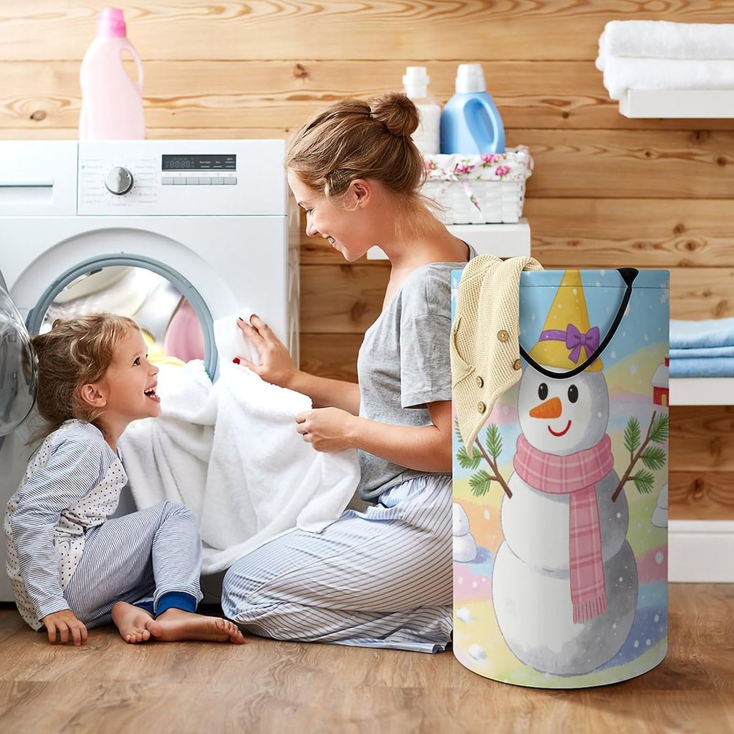 The pattern of the White Gray Snowman hamper is printed with exquisite patterns, which makes the product more attractive.Chic design allows it to be used in the living room to hold throw blanket, pillows, and reading materials, as well as in the bathroom for towels, or as a laundry hamper.The laundry hamper adopted collapsible design, equipped with handles. It is lightweight and portable for using, storing, and moving conveniently.White Gray Snowman Clothes hamper is suitable to store dirty clothes washing, place in the room to store toys, and other household goods, keep the house clean and tidy. Perfect laundry hamper for home, office, closet organizer, bedroom, bathroom, college dorm, etc.Gets out of your way when you need it to. This storage basket or laundry hamper is a good gift, which not only meets everyday storage needs but also carries deep care and love, a perfect way to turn thoughtfulness into warmth.